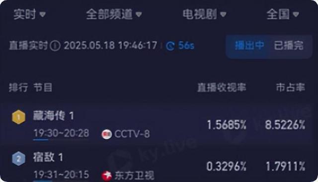 优酷开播 4 集,与此同时,该剧还上了央视八套黄金档,收视率轻松破碎。 1.5,获得全国同期收视率第一名 1。