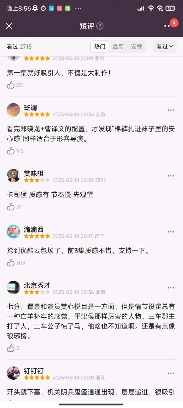 首播的口碑也出来了,大部分观众都给予了好评,纷纷称赞制作和剧情。不愧是郑晓龙导演的剧。画面质感和剧情节奏都很好。简直就是电影质感,剧情也很吸引人。在肖恩开始灭门之前,他被钟汉良的父亲和年轻演员的演技震惊了,迅速吸引了观众的注意力。
