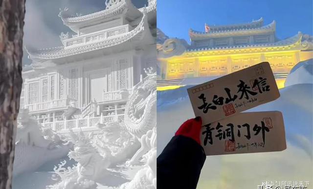 事实上,长白山景区在现实中 2024 年以 8 制造万立方雪量 1.5 万平方米的“云顶天宫”雪雕,恢复青铜门、陨玉通道等经典场景,成为稻米(盗墓笔记粉丝)的打卡胜地。