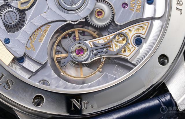 此外,36 运动还具有德国顶级运动的典型特征,如四分之三的夹板、珍珠图案、倒角边缘、蓝钢螺丝、鹅颈微调等。