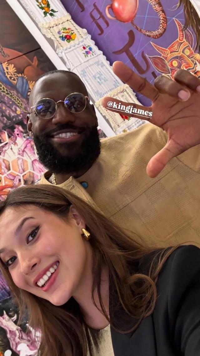 谷爱凌参加慈善晚会,与詹姆斯自拍互动