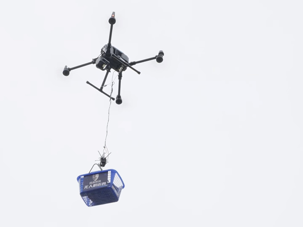无人驾驶飞机在“桃花岛”上送餐。所有图片都是 被访者供图