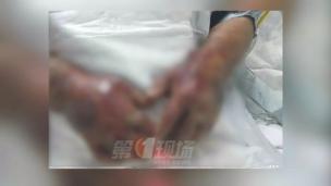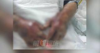 不久前,一名男子在广东厨房被鱼划破手指。