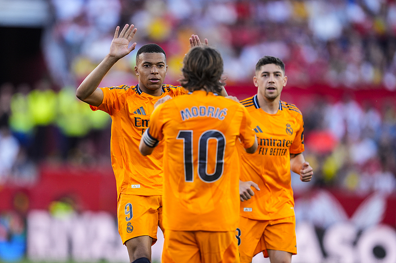 皇家马德里2-0塞维利亚,姆巴佩进了五个联赛冠军。