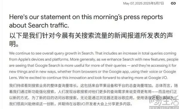 然而,苹果高管最近在谷歌反垄断诉讼听证会上声称,谷歌在Safari浏览器中的搜索频率首次下降,直接导致谷歌股价暴跌,迫使后者官方博客公开发表声明反驳。“我们的搜索查询总量持续增长,包括苹果设备和平台在内的搜索总量也有所增加。”