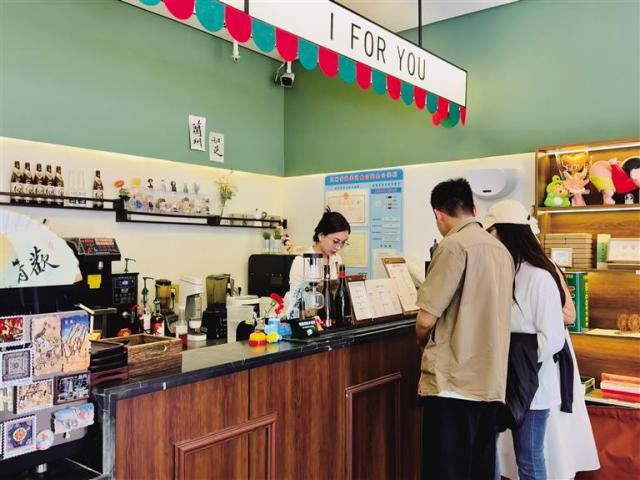 “咖啡味道浓郁,黄杏冰摇美式咖啡是销量爆炸。店里不仅有咖啡,还有茶、邮冰乐、鸡尾酒等。每年的五月到十月是饮料消费的旺季。”正宁路邮政 ·COFFEE “主题邮局负责人孙艺菁告诉记者,白天卖咖啡,晚上经营酿酒。旅游旺季,店铺营业时间从上午10:30持续到凌晨3:00到4:00。