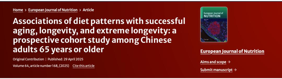 2025年4月,安徽医科大学公共卫生学院的研究人员在《欧洲营养学杂志》上发表了一项研究,探索了一种适合中国人健康长寿的饮食方式。研究结果表明,摄入更多不同来源蛋白质的中国老年人的饮食模式与长寿有显著关系。
