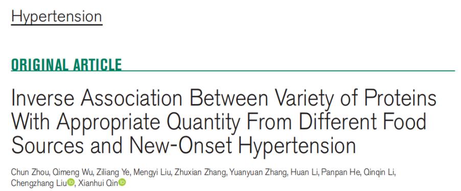 2022年,南方医科大学科研团队在《高血压》杂志上发表的一项研究表明,适当摄入来自不同成分的蛋白质与高血压风险的降低有关。
