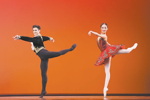 赵欣悦(右)、卢陈奇演绎了芭蕾舞剧《堂·吉邈德》的选段《婚礼双人舞》。