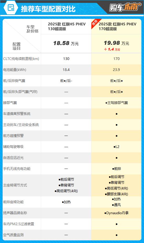所以,总而言之,170 超混版在 2025 款红旗 H5 PHEV 全系列车型性价比较高,建议消费者在购车时优先选择。
