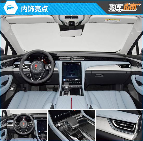内饰部分延续了燃油版车型的整体布局,提供石墨黑、石墨黑 石榴红,石墨黑 三种颜色搭配的月白蓝。配置 12.3 英寸全液晶仪表和 12.6 内置最新一代智能网络连接系统的英尺纵向中控大屏幕构成,支持多个互联功能。座椅采用打孔皮革材料,提高插电式混合动力特性,提高远程乘坐舒适性。全景式天窗,前排座椅加热,双区自动空调等配置,也进一步丰富了整车的舒适感。