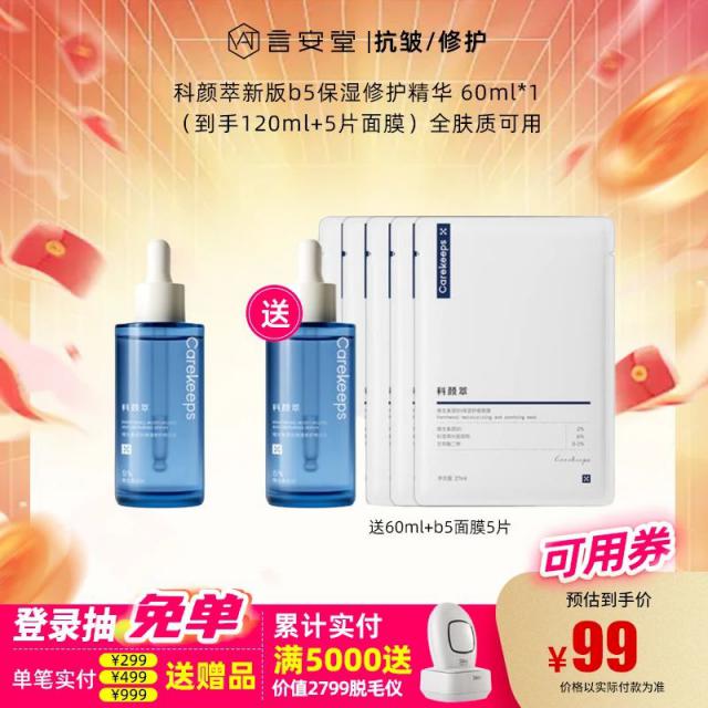 质地很干净透明,上脸秒吸收,一点都不粘!的确,一瓶可以抵抗 N 瓶子啊,许多人都应该用过它的一代。 b5 精华,这是一个新的升级版本,堂里只需要 99 元就能拥有 2 瓶,一共 120ml,还加送 5 片面面膜!!!!