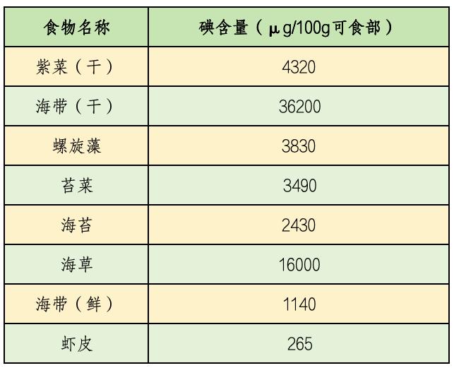特别提示:并非所有海产品都含有碘。植物性海产品,如海带、紫菜等,含碘丰富。