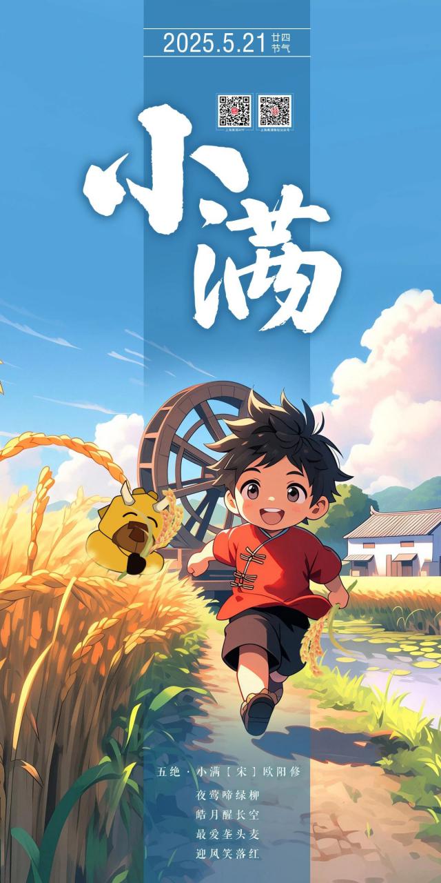 5 月 21 一天,时间来到了二十四节气中的第八个节气,夏天的第二个节气。——小满。此时,夏熟作物(如小麦)开始灌浆,但尚未完全成熟,故称“小满”。围绕这个季节,民间形成了许多习俗。