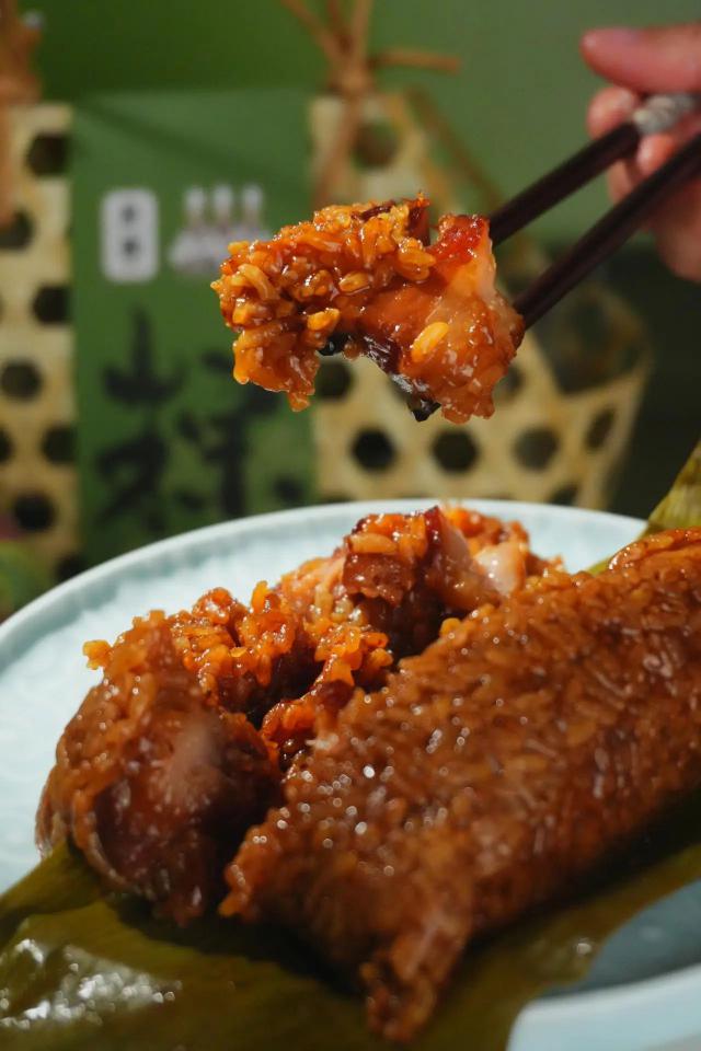 就今年重磅回归的“特大黑毛猪肉粽子”而言,不仅重约。 280 克,还选择了伊比利亚黑猪五花肉,每只含有四块肥瘦相间的肉,搭配秘制酱料。大米颗粒饱满柔软,成为消费者争相购买的“重量级”产品。