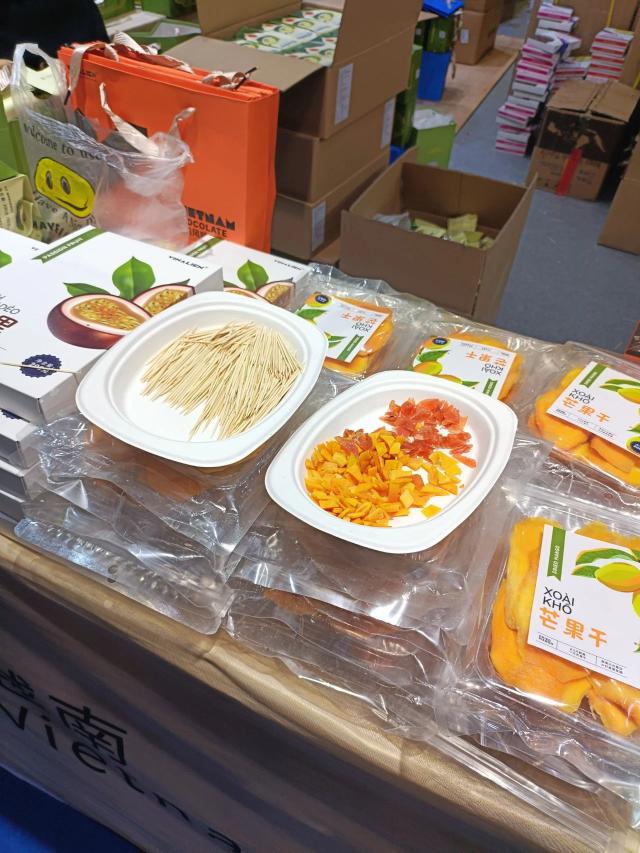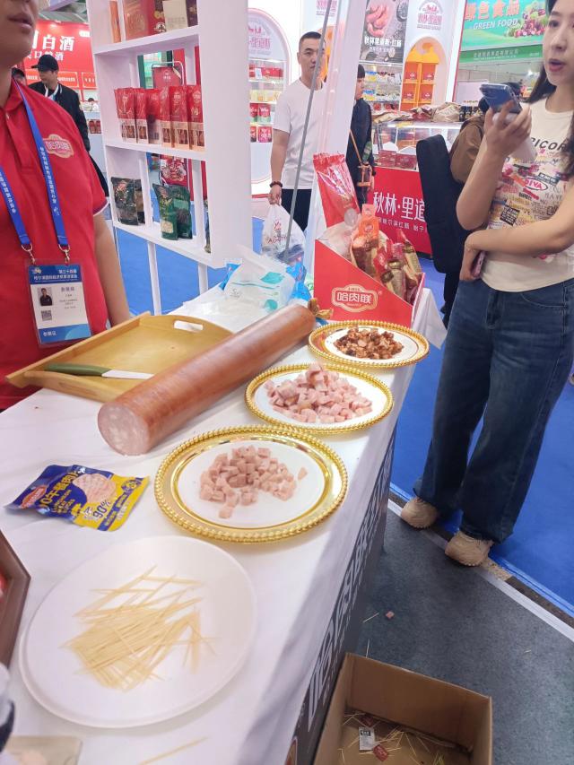 走进美食展区,浓郁的香气迎面而来:丝滑的进口巧克力、不同口味的香肠和醇厚的现磨咖啡交织在一起,营造出诱人的气息;金黄色的菠萝、酸甜的芒果干、酥脆的榴莲蛋糕等特色小吃令人眼花缭乱。参展商精心设置了试吃台,贴心准备了牙签,观众穿梭在每个展台之间,将哈洽会变成了“舌尖上的世博会”。