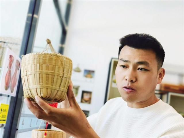 5 月 15 日本,丁国川正在武威市汉唐天马城非物质文化遗产博览会体验馆用六角针编织一个经纬交错的屏幕。作为武威市非物质文化遗产项目凉州编织技术的传承人,33 十多年来,年丁国川把凉州编织从田间带入现代生活,更以“非遗”为基础。 “创新模式,将传统工艺推向更广阔的舞台,使古代技艺焕发青春。