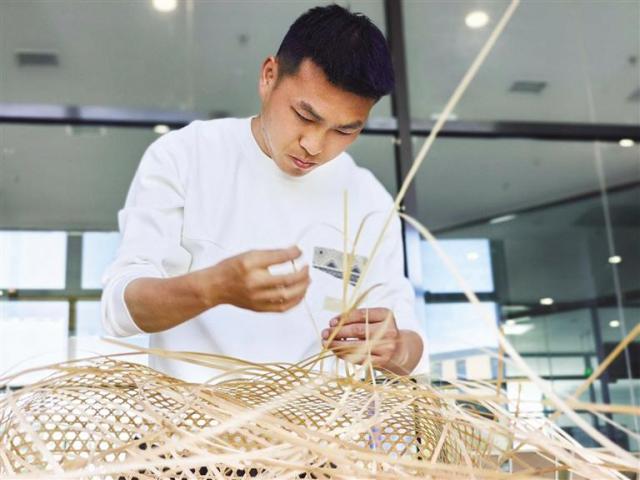 丁国川与编织的相遇始于他在湖南省怀化学院工业设计专业学习期间。当他接触到竹编、藤编等传统工艺时,他被“化草为宝”的创造力深深吸引。“一根竹条和一条丝带可以通过编织成为兼顾实用性和美感的器物。这种传统智慧与现代设计的融合让我着迷。”丁国川回忆道。
