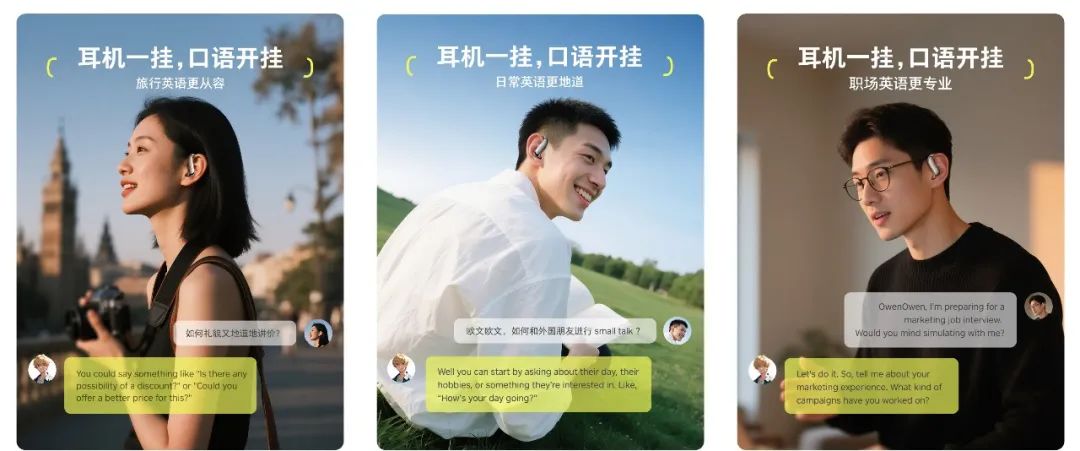 根据它的宣传视频,我们可以看到Owen已经可以涵盖很多场景,比如日常对话、职场英语、旅游等等。