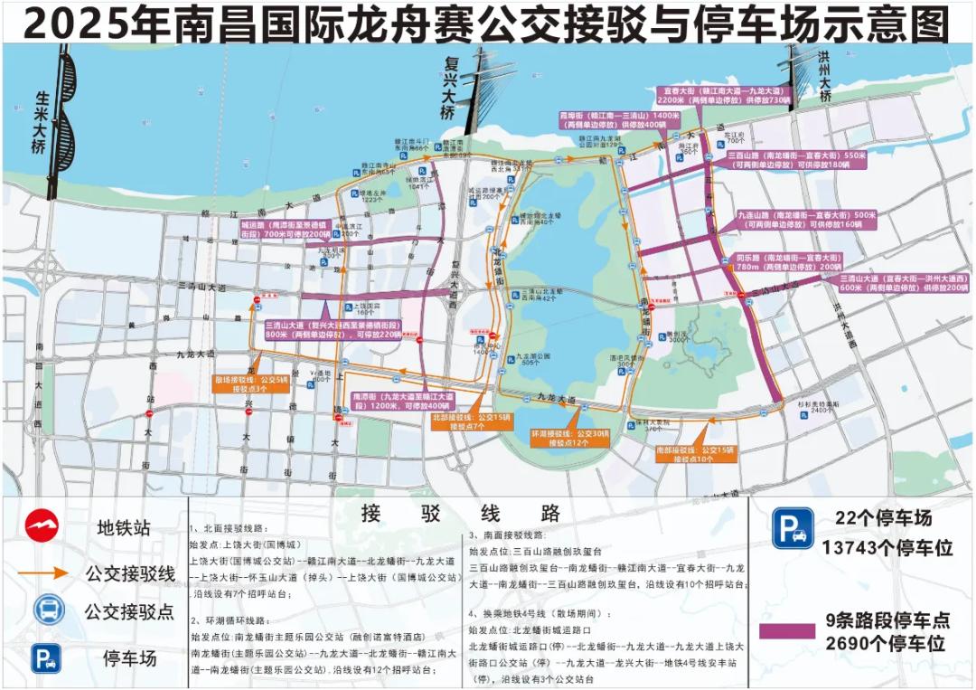 2025中国南昌国际龙舟赛将于5月23日和5月24日举行。为确保比赛和一系列文化旅游活动的顺利开展,南昌交警将根据现场交通情况采取临时交通管理措施,加强对车辆停放的精准引导。请优先考虑地铁、公交等公共交通方式的低碳出行。