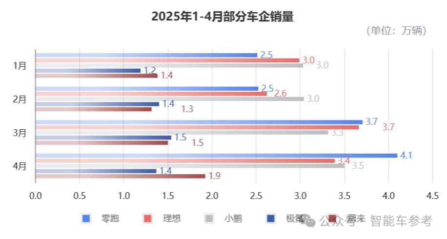 提到新的力量,马上想到的不仅仅是过去。“蔚小理”,今年也有大爆炸零跑——3、四月蝉联新力量销冠,四月成为唯一一家月销量突破4万辆的新势力汽车公司。