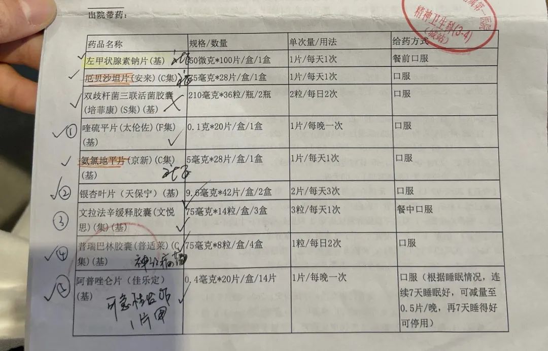 母亲出院时,沃琳的药物清单