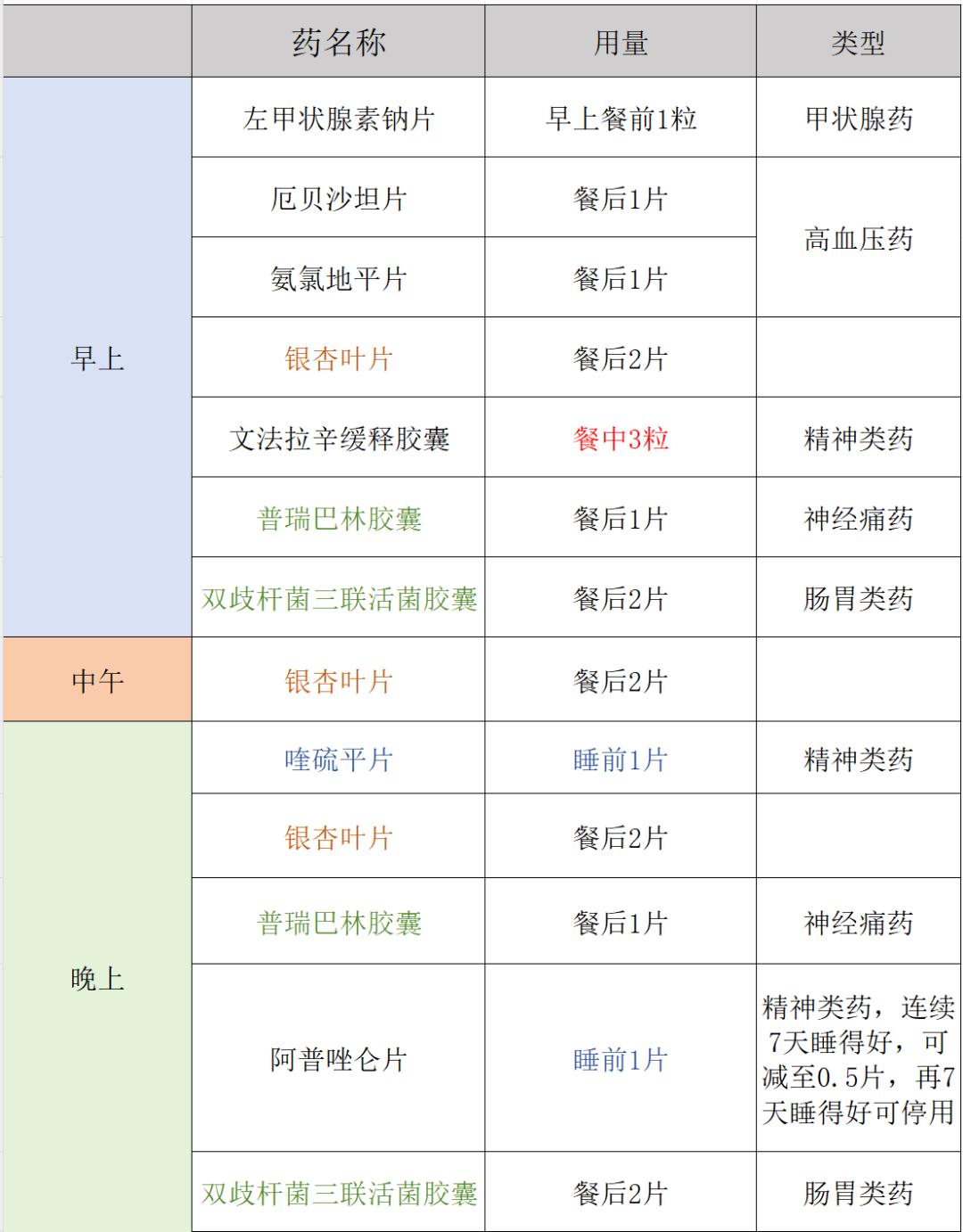 沃琳每天给妈妈做的药表。