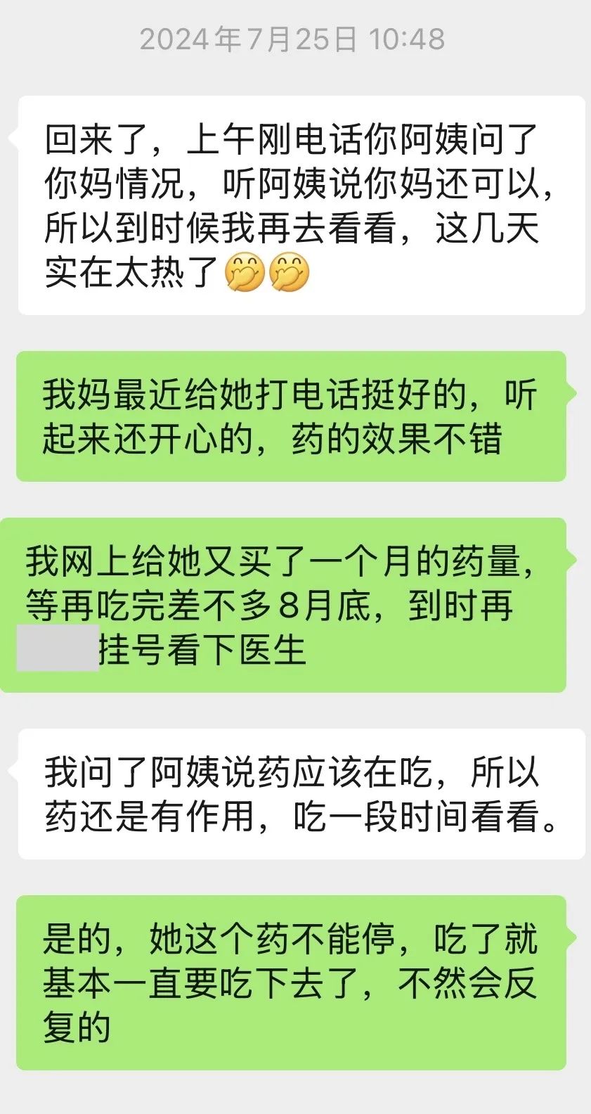 另外,妈妈很容易把坏消息放在心上。老人在家吃药是不规律的。亲戚聊天的时候,一句无心的“药是三分毒”让妈妈自己停药,导致病情急剧恶化。
