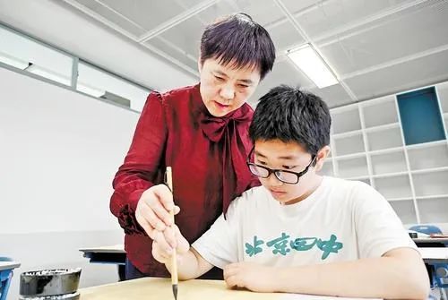 2024年9月,王蕾得知北京四中雄安校区招聘公益老师后,抱着试一试的心态提交了申请,没想到通过了。从那以后,她每周都在业余时间给北京四中雄安校区的学生上一堂书法课。
