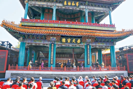 在古色古香的畅音阁戏&上,张国立作为主持人出现在观众面前。“你所在的畅音阁是故宫规格最高的戏&。皇帝后来在这里听了这部剧,活了下来。徽班也在这里献上了艺术。”张国立简短幽默的介绍,让观众进入了故宫几百年的历史语境。