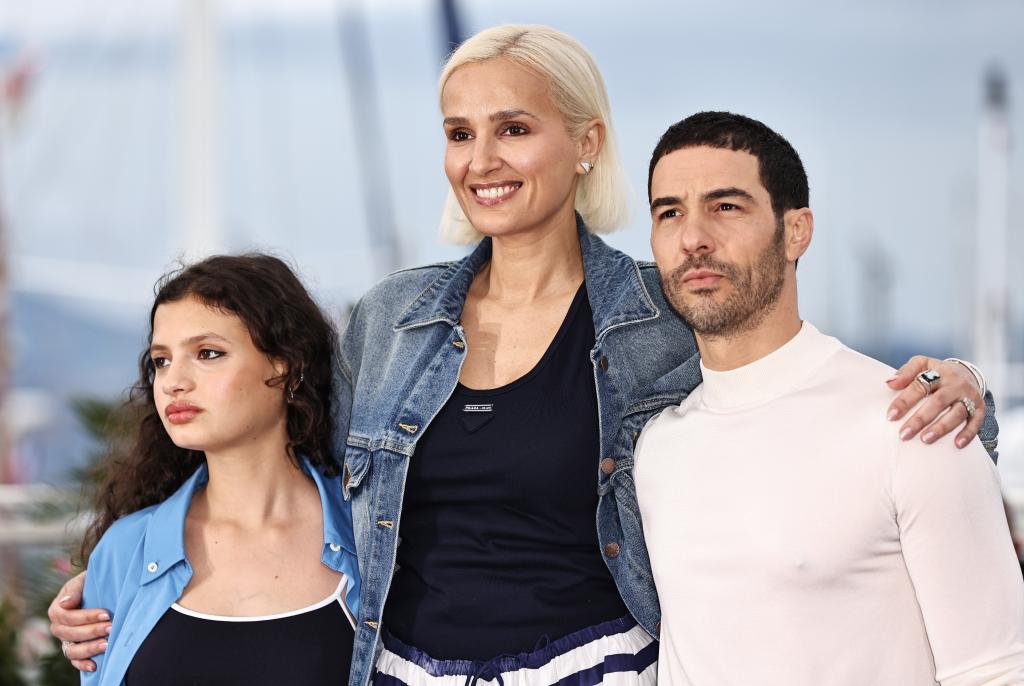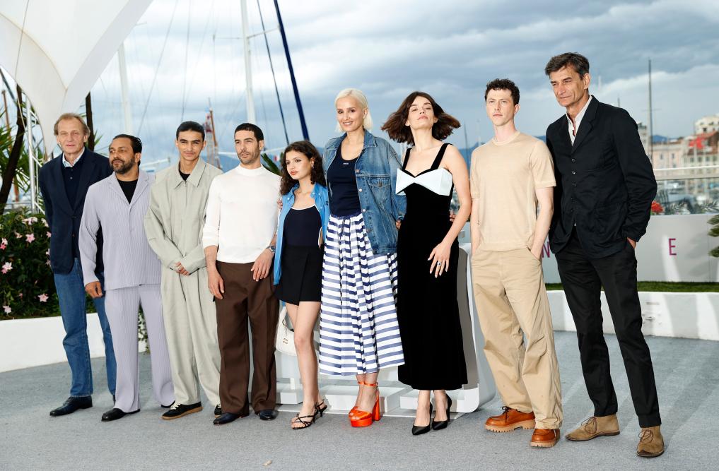 U2003u20035月20日,法国导演朱利娅·迪库尔诺(中)在法国南部小镇戛纳举行的第78届戛纳电影节上(中)、演员梅利莎·博罗斯(左)和塔哈·拉希姆出现在主要竞赛单元电影《阿尔法》中。新华社记者 高静 摄