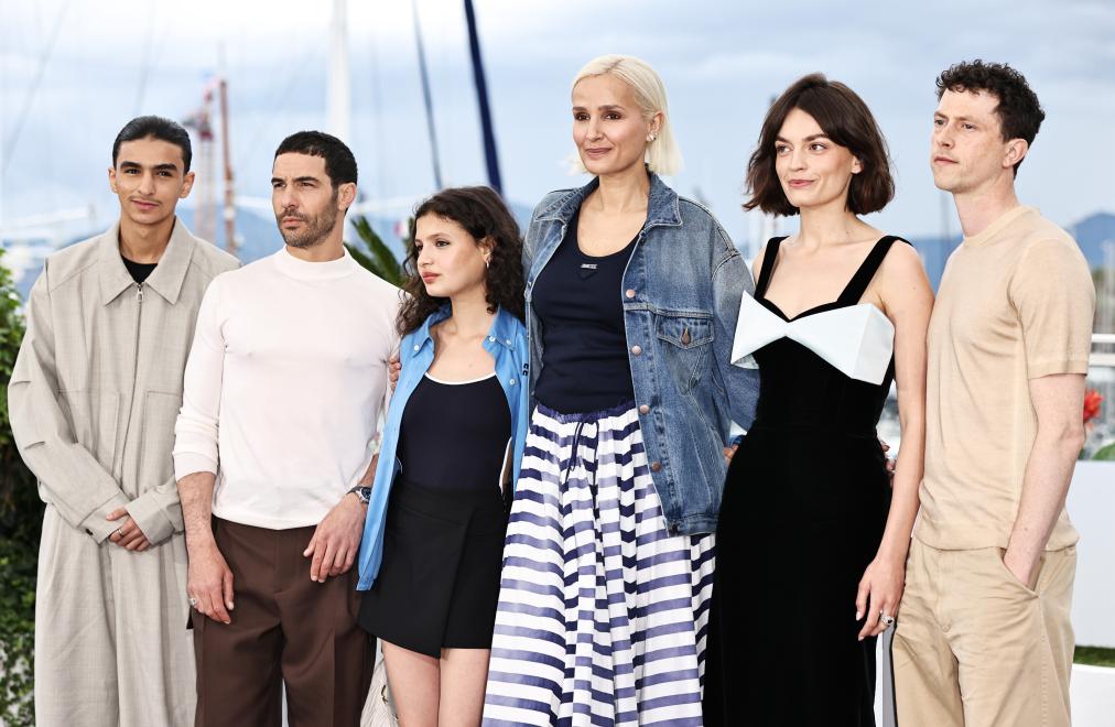U2003u20035月20日,法国导演朱利娅·迪库尔诺(右三)在法国南部小镇戛纳举行的第78届戛纳电影节上,与创作者一起出现在主要竞赛单元电影《阿尔法》中。新华社记者 高静 摄