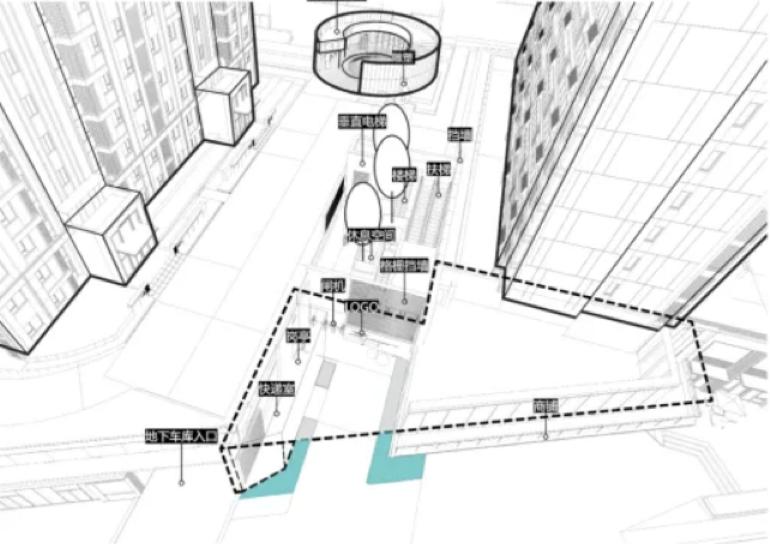 比如在济南中海项目中,入口景墙与建筑之间采用倾斜设计,既优化了审美效果,又引导了回家的方向。在功能节点的设计中,充分考虑了地下车库、人行通道和商铺的需求。
