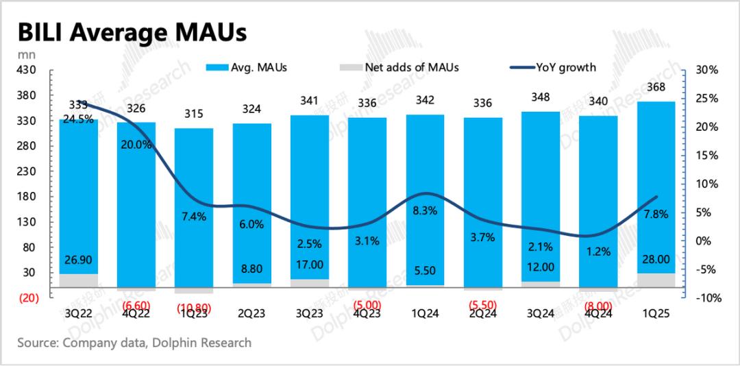 2. 用户增长回到过去:自从管理层提出重视DAU指标以来,市场对哔哩哔哩流量扩张的预期基本不大。所以这一季度增加了2800万,真的意味着回到过去的荣耀。