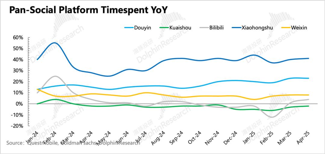 结合QM数据4月份的数据,流量暂时稳定,总时长已连续两个月恢复同比增长。