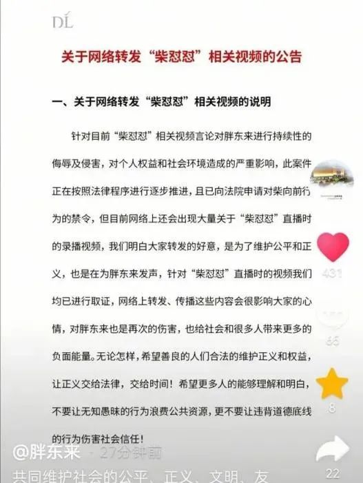 所以,胖东来特别呼吁,希望很多网友减少对柴怼相关视频的传播,等待时间和法律带来的正义。