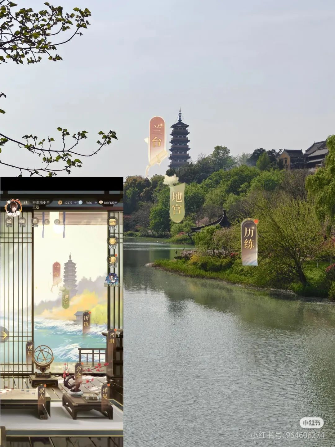 与《如鸢》游戏界面相比,扬州大明寺栖灵塔(图片来自社交平台)