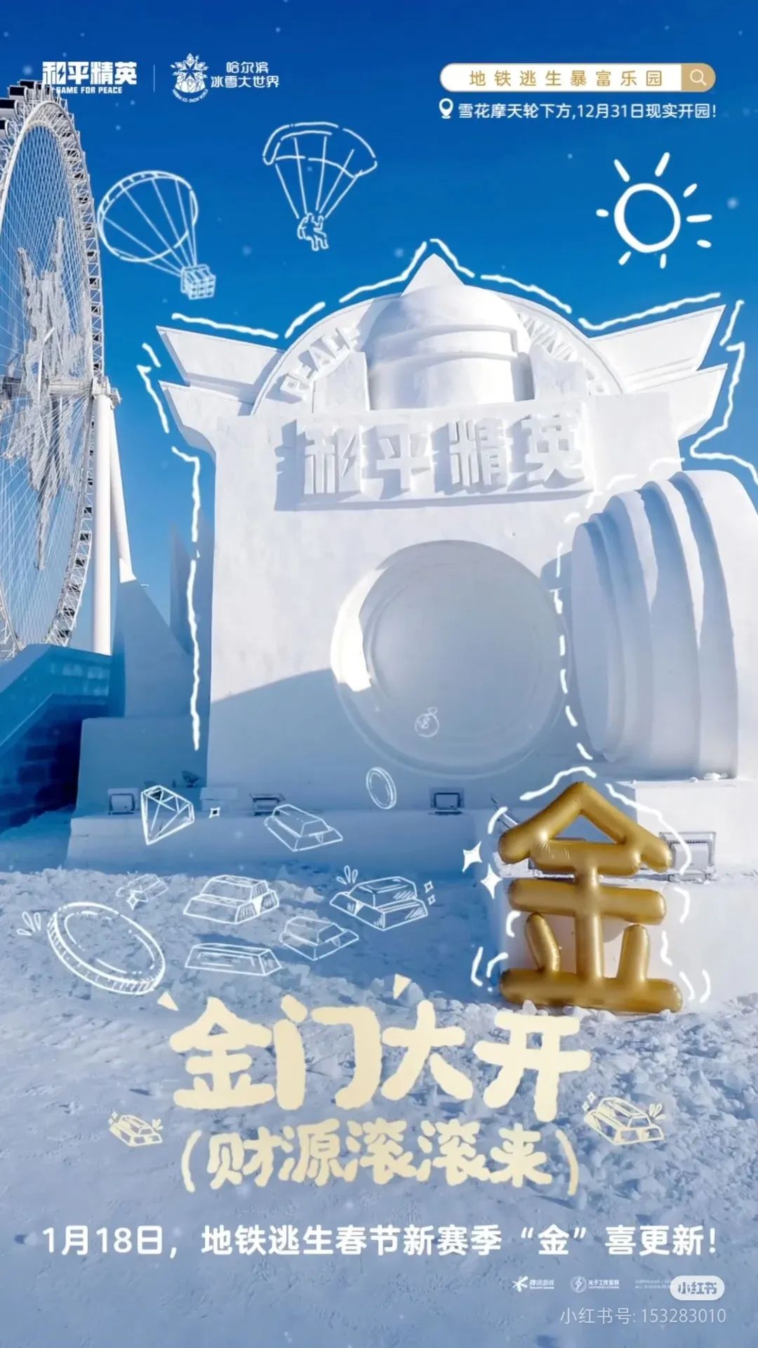 比如2024年1月,《和平精英》与哈尔滨冰雪联动。游戏中的限时游戏恢复了哈尔滨冰雪世界的场景,同时在哈尔滨松花江冰雪嘉年打造了主题公园,形成了线上线下循环联动。