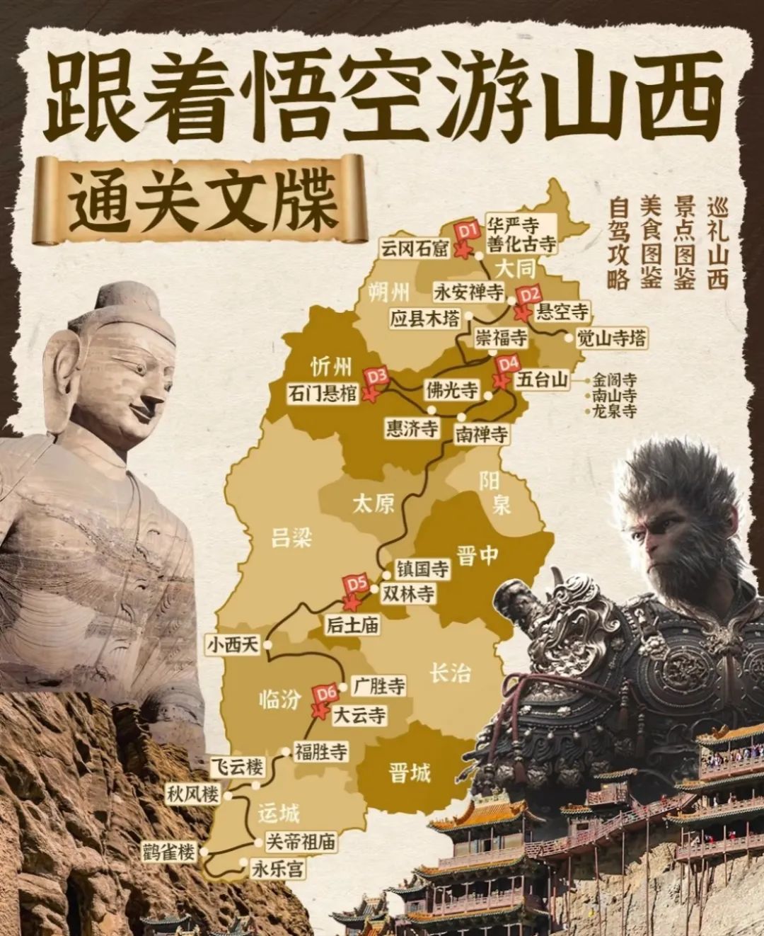 2024年8月,《黑神话:悟空》上线,山西省敏锐把握机遇,同时启动“跟随悟空游山西”活动,推出特色文化旅游线路和线下打卡设备。活动期间,山西旅游预订量较去年增长约70%,相关话题阅读量超过100亿。