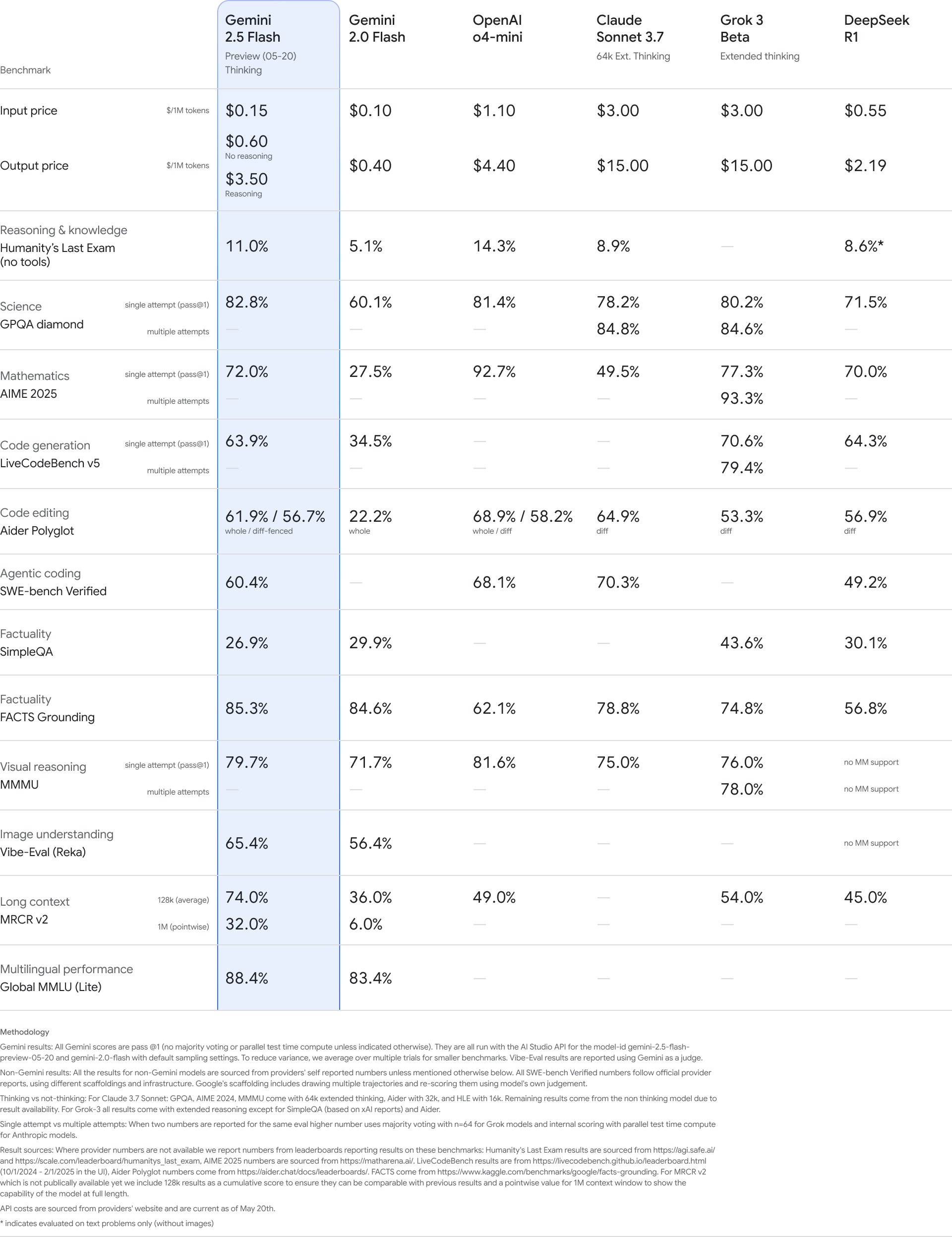 Gemini 2.5 Flash:强调效率和成本,token的使用在保证多模态理解的同时减少30%,更适合高频日常调用。