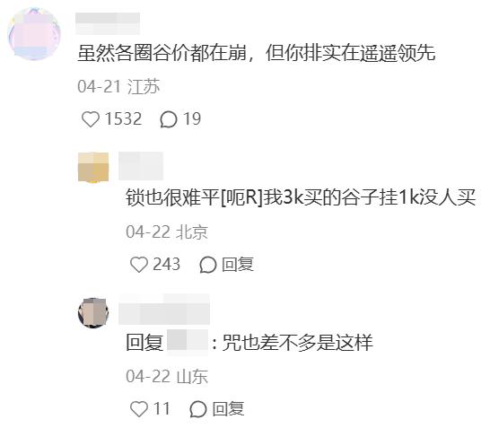 时代变了。现在去社交媒体搜索这些IP的谷圈话题,谷价“崩盘”、“暴跌”、“暴跌”等词语越来越频繁。我恍惚中以为自己跳到了真正的股票讨论区。