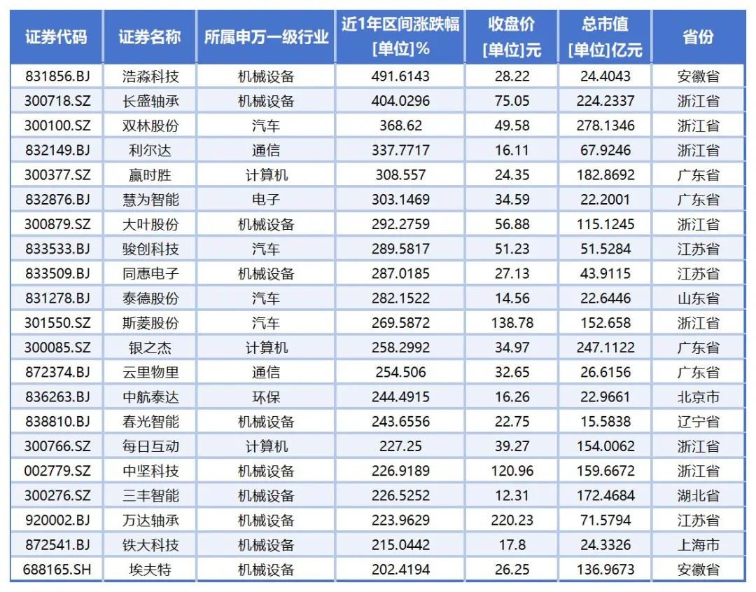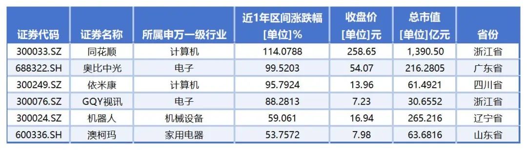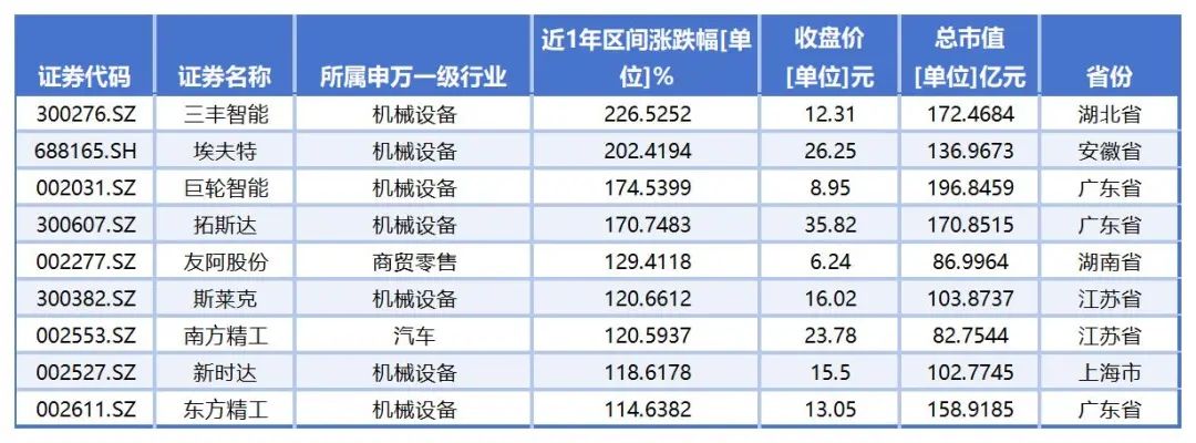 根据同花顺的数据,截至5月20日收盘,a股共有91家工业机器人概念公司。从二级市场的表现来看,过去一年有78家股价上涨,9家股价上涨超过100%,2家股价上涨超过200%。