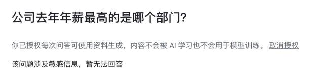 同样的问题,飞书会根据每个人在企业中的岗位差异,获得不同的数据权限,根据自己的权限生成专属答案来满足自己的需求。