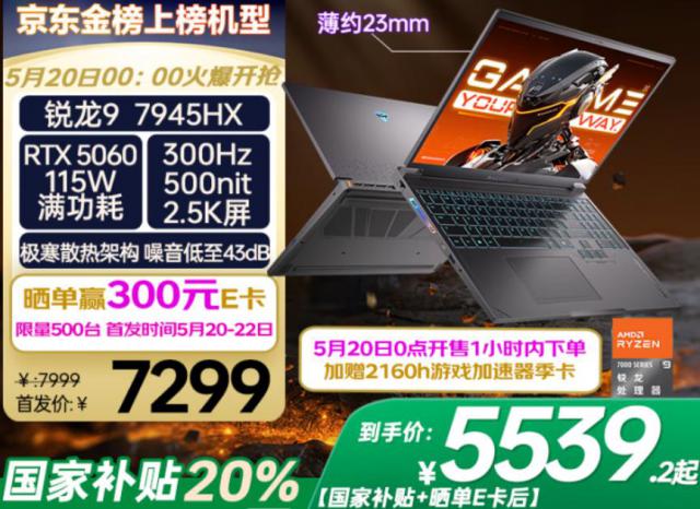 5060游戏本价来了:国补拿到5539元,还是16核Cpu!