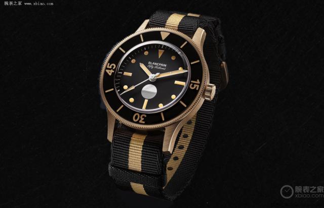 另外,宝珀于 2023 每年发布的50°系列 70 周年纪念款 ACT 3(型号 5901-5630-NANA),表壳也是用黄铜金制成的。这款限量 555 一块手表,以 1957 每年都供美国海军使用 50 噚 Mil-Spec “湿度计”手表为原型,选择 41.3 mm黄铜金表壳,外观更好地再现了历史原貌。与此相比,历史原著采用了“德国银”(一种主要成分是铜、锌、镍的合金)表壳,在材料方面也有呼应作用。