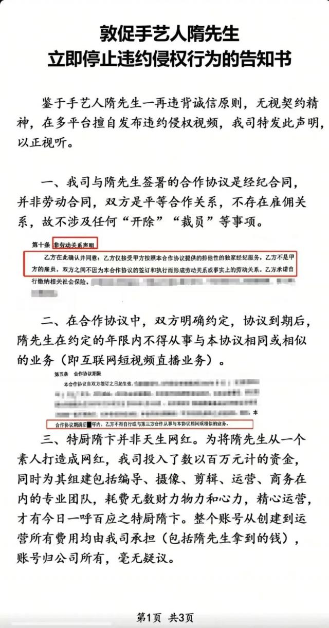 三强调隋坡原本是个“无业人员”,企业投入大量资金和专业团队建设 "特别厨师隋邈" 这个账号。