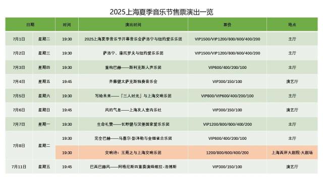 2025年上海夏季音乐会即将到来!请查看这个表演日历