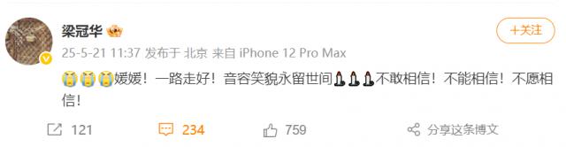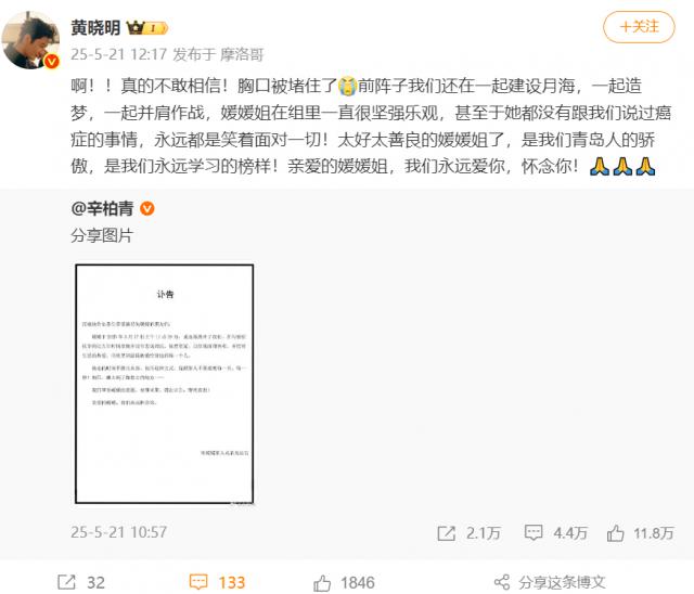 许多明星,如赵丽颖、黄晓明等,发文悼念。