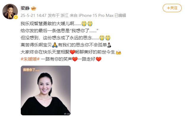 演员梁静给朱媛媛发的最后一条信息是“我真的很想你……”,但这句日常的问候最终因为朱媛媛的去世而无法得到回应。