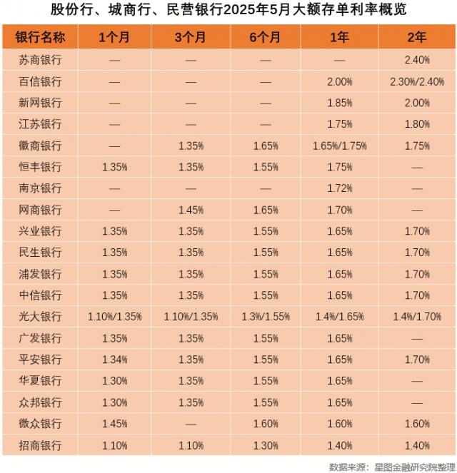 那么哪个银行的大额存单利率更高呢?请参阅以下统计表: